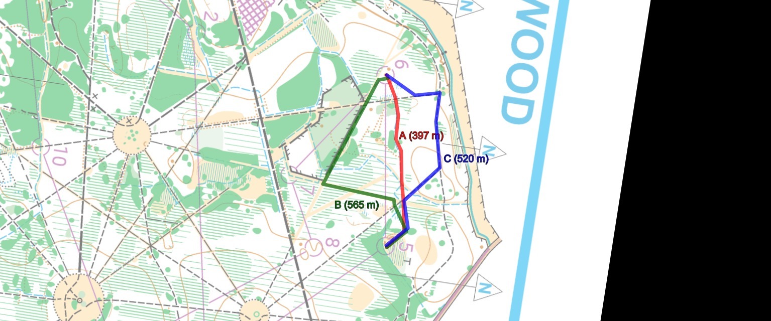 The aim of the light green course was to give plenty of route choice so you may be interested to see some of the choices which were available: